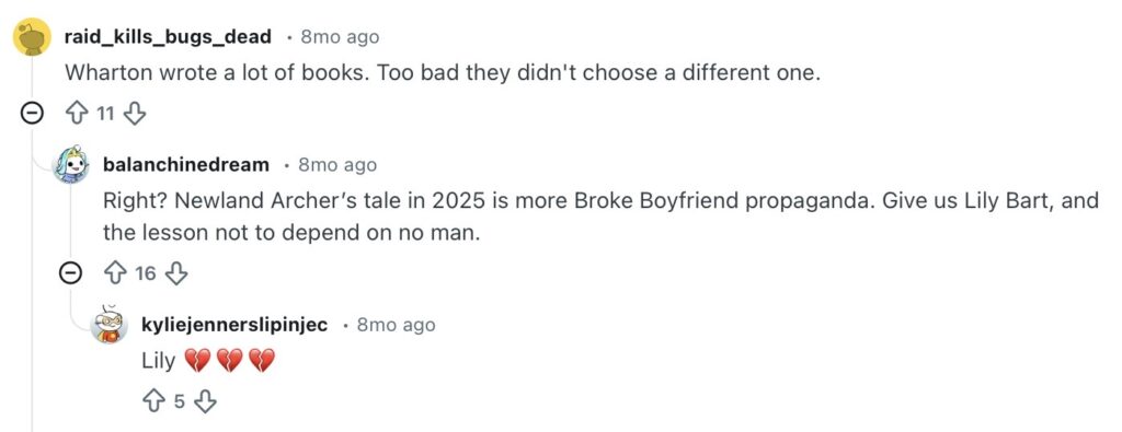 Sigh, Age of Innocence. It’s funny how so many people did NOT like that book, and then our faction really loved it. The line that keeps coming back to me is “There were a hundred million tickets in his lottery, and there was only one prize; the chances had been too decidedly against him.” So sad!