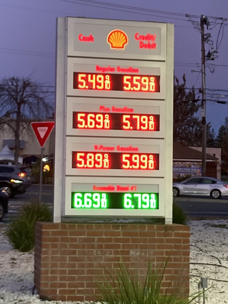 Gasbuddy tells me there is cheaper gas around, closer to $5.19 a gallon. Our gas powered car is at 1/2 tank. Do I fill her now, because prices are going to keep going up? Or do I wait in hopes they will go down? We don’t drive this car far, the electric car does most of the driving around here. This picture is at about 7:15am, thanks to the time change it’s still a little dark. I walked over to Sprouts to buy creatine and probiotics.