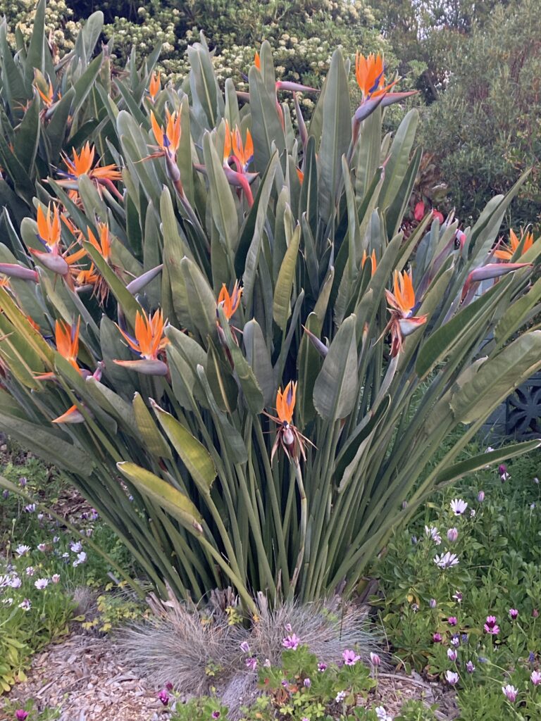 Down the street a bit is a yard with a few Birds of Paradise plants in front, which are blooming right now. Aren’t they lovely? They remind me of Catherine, a woman I used to deliver meals to when I volunteered for my local Meals on Wheels. She had a beautiful Birds of Paradise in front of her house. She was almost entirely blind, a side effect of her diabetes that was caused by years on high dose prednisone for her Rheumatoid Arthritis. Way back when they didn’t know the dangers of long term/high dose usage, and just thought it was a miracle drug. Anyway, one year around this time, I was planning a birthday party for Maya, and thought it would be nice to have some Birds of Paradise flowers in a vase, along with some purple irises, and I asked if I could clip some before the party. It made her so happy to be able to do something kind for me! I always remember that, when someone wants to do something kind. Try to let them.