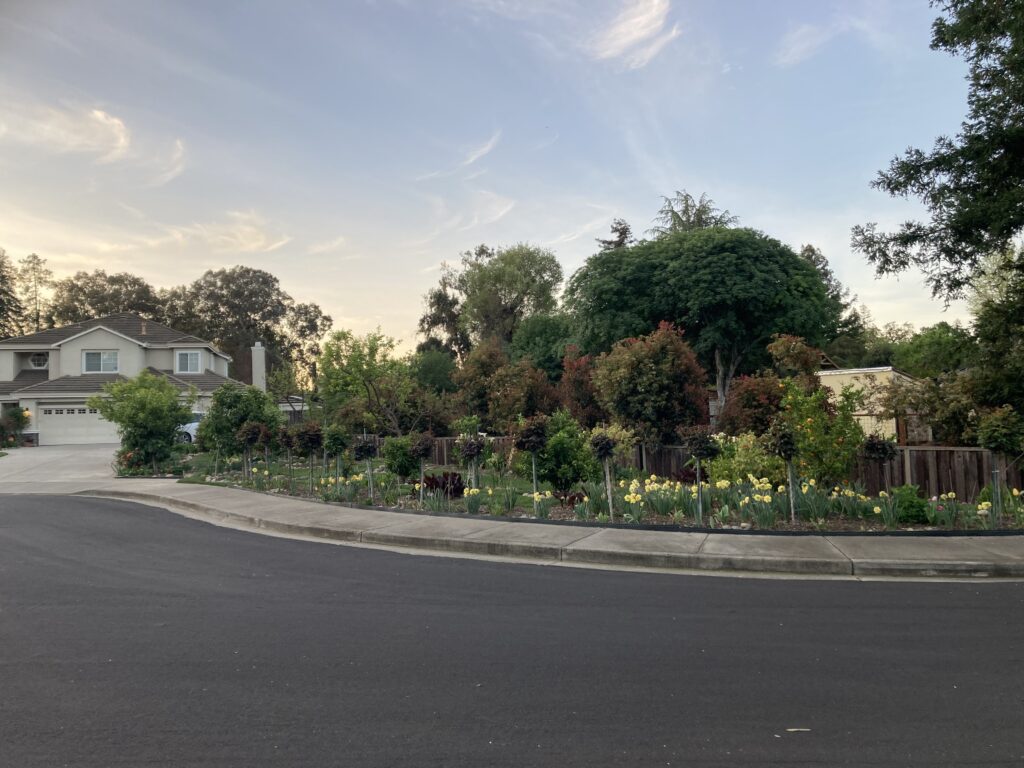 There’s a house a couple of blocks from us with a beautiful flower garden in front. They have a long stretch of narrow property, which perhaps should be more drought tolerant, but I love how they have it planted.