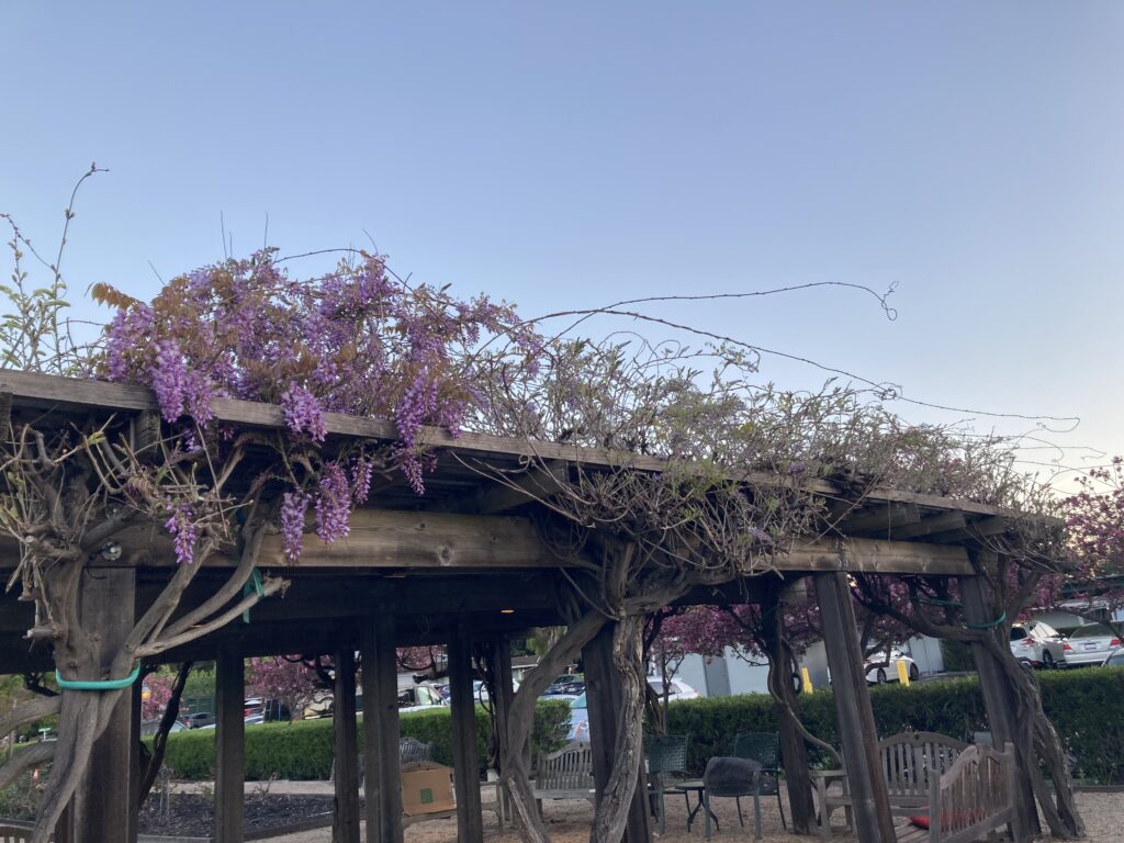 We are now past the picture of tulip trees phase of spring, so now I’m posting pictures of wisteria vines. I took this picture on my morning walk, and I like how it’s just starting to bloom. Soon the entire structure will be covered in beautiful blossoms. Which brings me to Bridgerton. Have you noticed how the Bridgerton household has wisteria in bloom ALL OF THE TIME? Does this show only take place during the Spring? Does wisteria bloom later and longer in England? It doesn’t last all that long here, but you know what? I’m going to pay attention and see how many weeks we have blossoms. Count this as week #1.