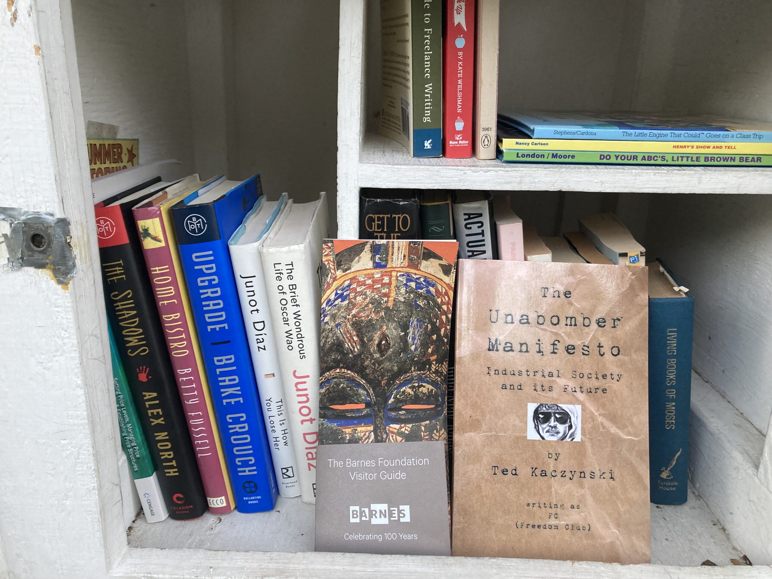 Yesterday I stopped at a Little Free Library to straighten it up, and the juxtaposition of the Unabomber Manifesto being in there with a flyer from the Barnes Foundation was interesting. The Barnes Foundation used to be down the street from us when we lived in Philadelphia. We visited a couple of times when we lived there, it’s a spectacular collection, and the will of the founder determines exactly how the pieces are to be displayed (and way back in 2006 or so, Ted and I saw a play based on the legal struggle surrounding the founder’s will and the question of what constitutes art, and what should be displayed vs hidden away. It was really good). The Foundation has since been relocated to a more central area, near the Philadelphia Museum of Art. I liked that it was in a big house in a swanky Mainline town, but a downtown museum makes more sense. Then, the same day, a guy was out jogging in his Wawa t-shirt! Philly representing in the Bay, is what I thought.