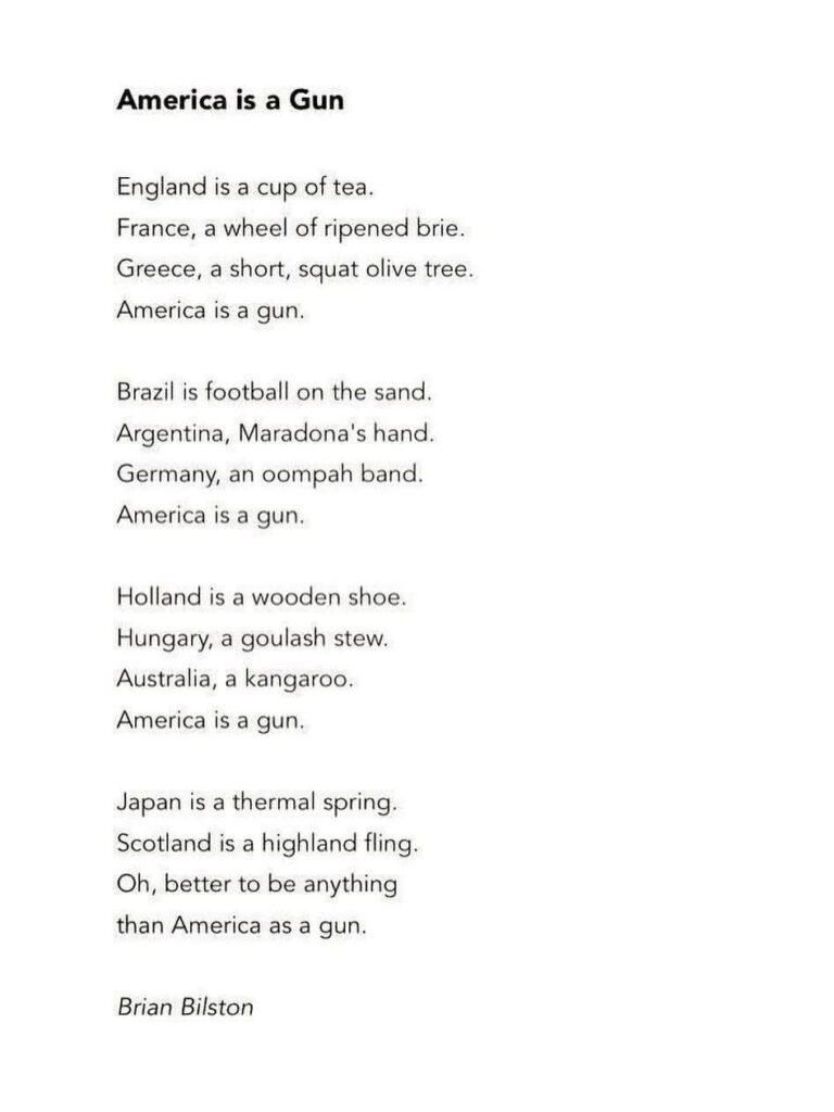 The latest school shooting, this time in Minnesota, reminded me of this poem. So frustrating, so heartbreaking, so infuriating, so avoidable. I love a lot about my country, but there is a lot here to despise as well.