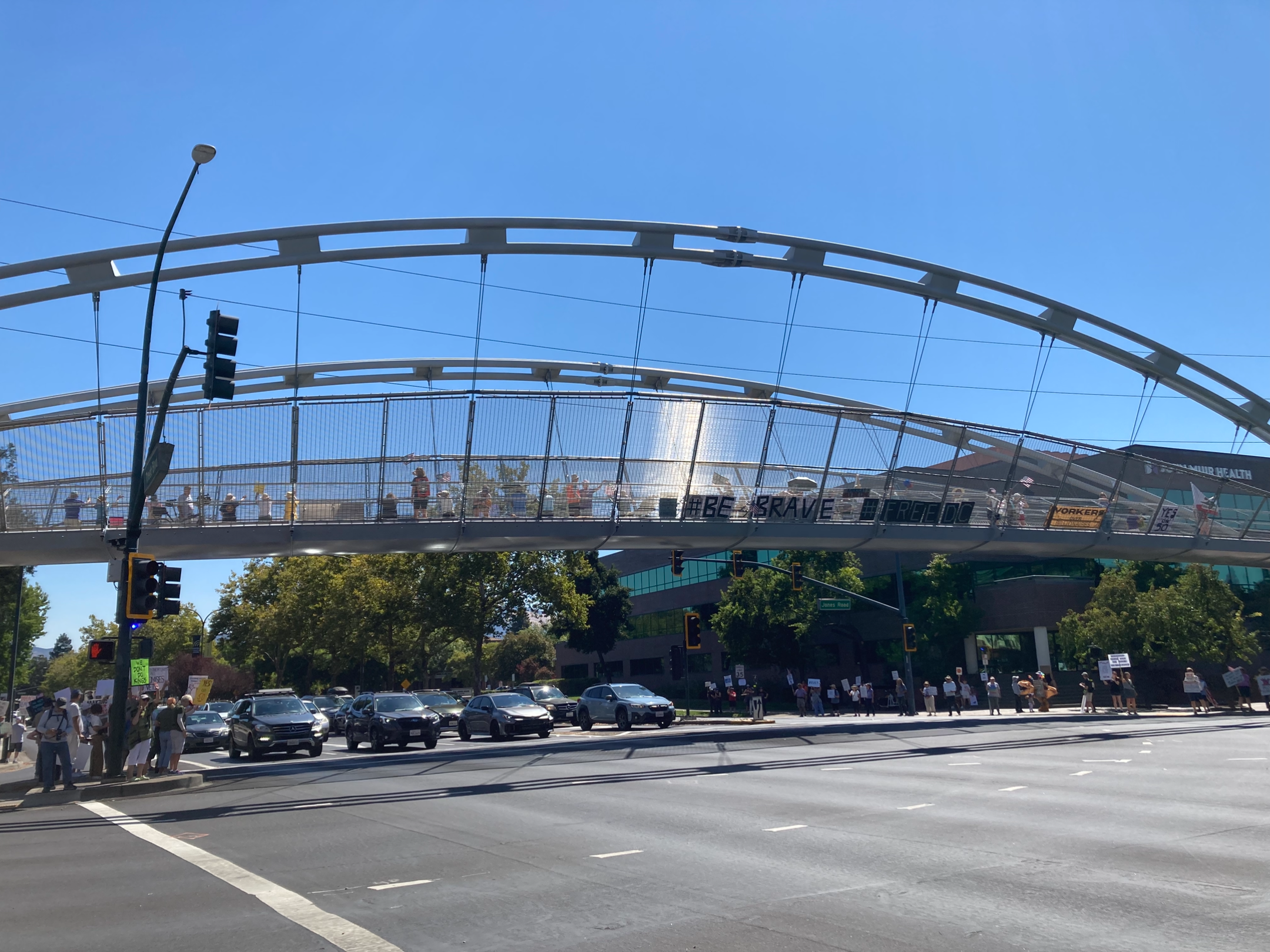 Last week’s protest was just down the street from our house, very convenient. The signs on the pedestrian bridge say “Be Brave” and “Free DC”.