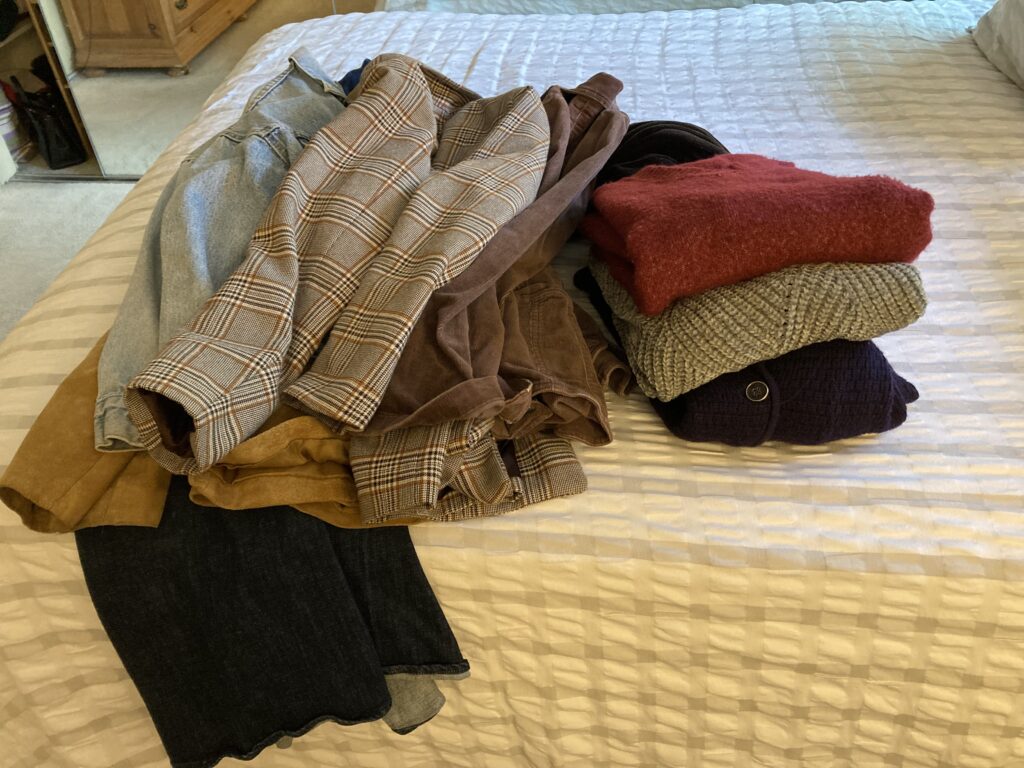 Someone was collecting warm clothes to send to Ukraine, so Maya and I went through our closets to see what we had. I had been waiting for the weather to change before deciding what to do with some sweaters, so this was handy. Maya grabbed a bunch of jackets/blazers. She’s a lot smaller than me, but she had an oversized light jacket that I kept. I added some scarfs, and off they went.