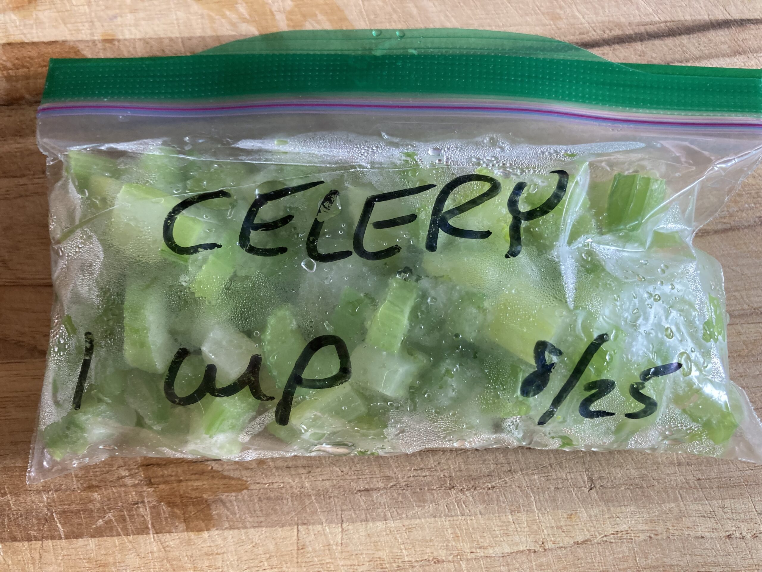 The second thing I learned was that you can freeze celery. This is great news, because we don’t really like celery much, so we don’t snack on it, with peanut butter or hummus or cream cheese or plain. Occasionally if I have some laying around, I might put it in a smoothie. But mostly we use it for recipes. The last time we had a bunch laying around, I did a little internet search and found that you can freeze celery for recipes. I chopped it up finely, blanched it quickly, cooled it quickly in ice water, then let it dry out, and froze it. Perfect for the chicken soup I made this week, really nice to not have to buy more.
