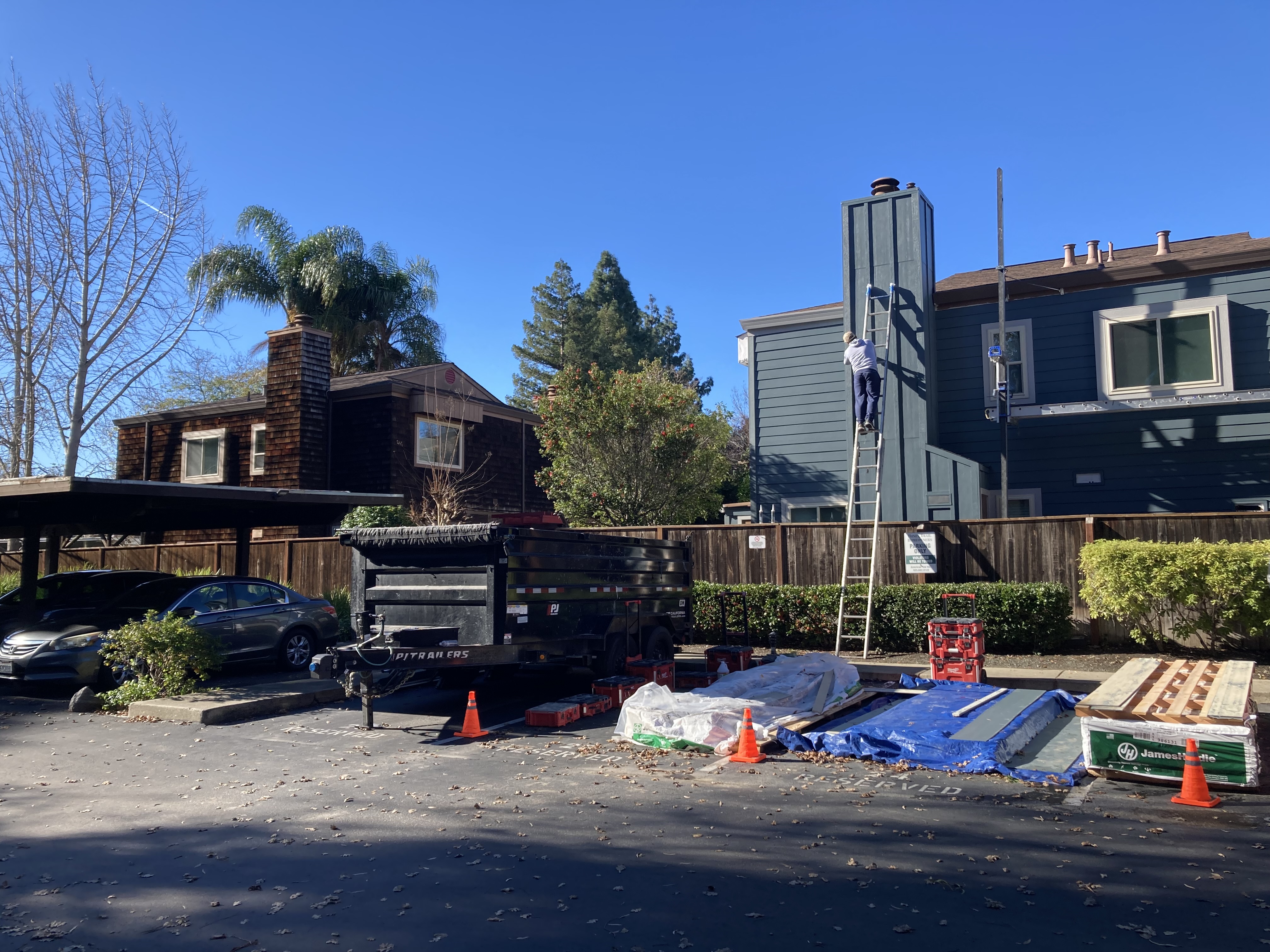 In other news, the big project around here has finally started. Our townhouse complex is replacing the 1978 shingles (left) with newer, less flammable siding (right) and it’s looking great. It has been a lot of work, unpaid by our HOA board member volunteers (Ted included).