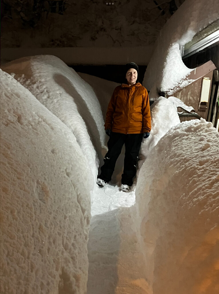 Elsewhere in Alaska, this is the situation in Juneau, where my brother Richard and his wife Kathy live. This is Kathy showing the height of the snow banks around their house. She’s about 5’3”, and this was a couple of days ago. They’re trying to keep paths clean, and Kathy has had 4 snow days in a row off from work. They had 82 inches of snow in December, which sounds horrible to me. Alaska is truly beautiful, but this news makes me fond of California.