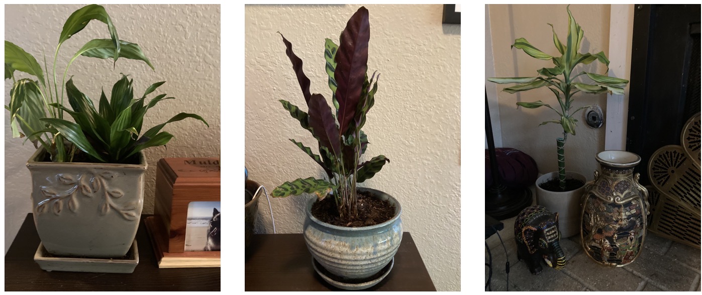 Hello, my name is J and I kill plants. See these lovely houseplants? I bought them all at the Farmers’ Market last September (these healthy pictures are from then), and none of them survived. The one on the right was doing poorly and I thought I would cut it back so it could start over. But I didn’t clean my pruning shears first, and I introduced bacteria in there and the stem turned black. I sent my cousin, the Master Gardener, a text, and she said, yeah, it’s dead. What I’m grateful for here is not so much that I killed three perfectly lovely plants, but that I have my cousin to ask for advise, and that she can tell me when it’s OK to let a plant go. It’s sad to have dying plants around the house, but I am always hesitant to get rid of them if there’s a chance they could bounce back.