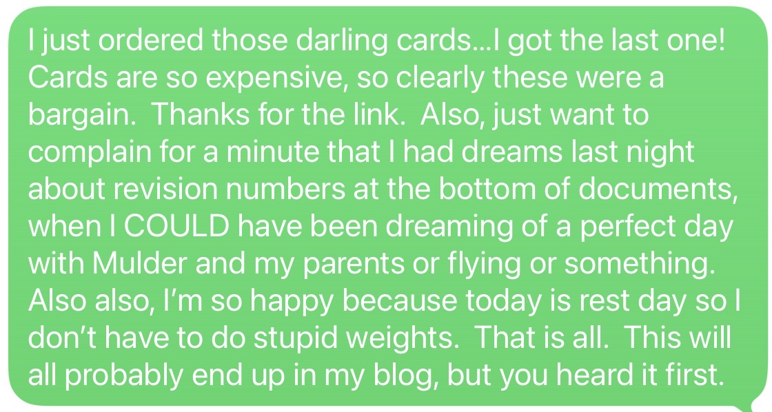 You all know I adore you, right? Being able to text random thoughts to you, and receive random texts, is kind of a game changer for me. So fun. It makes me so, so happy.