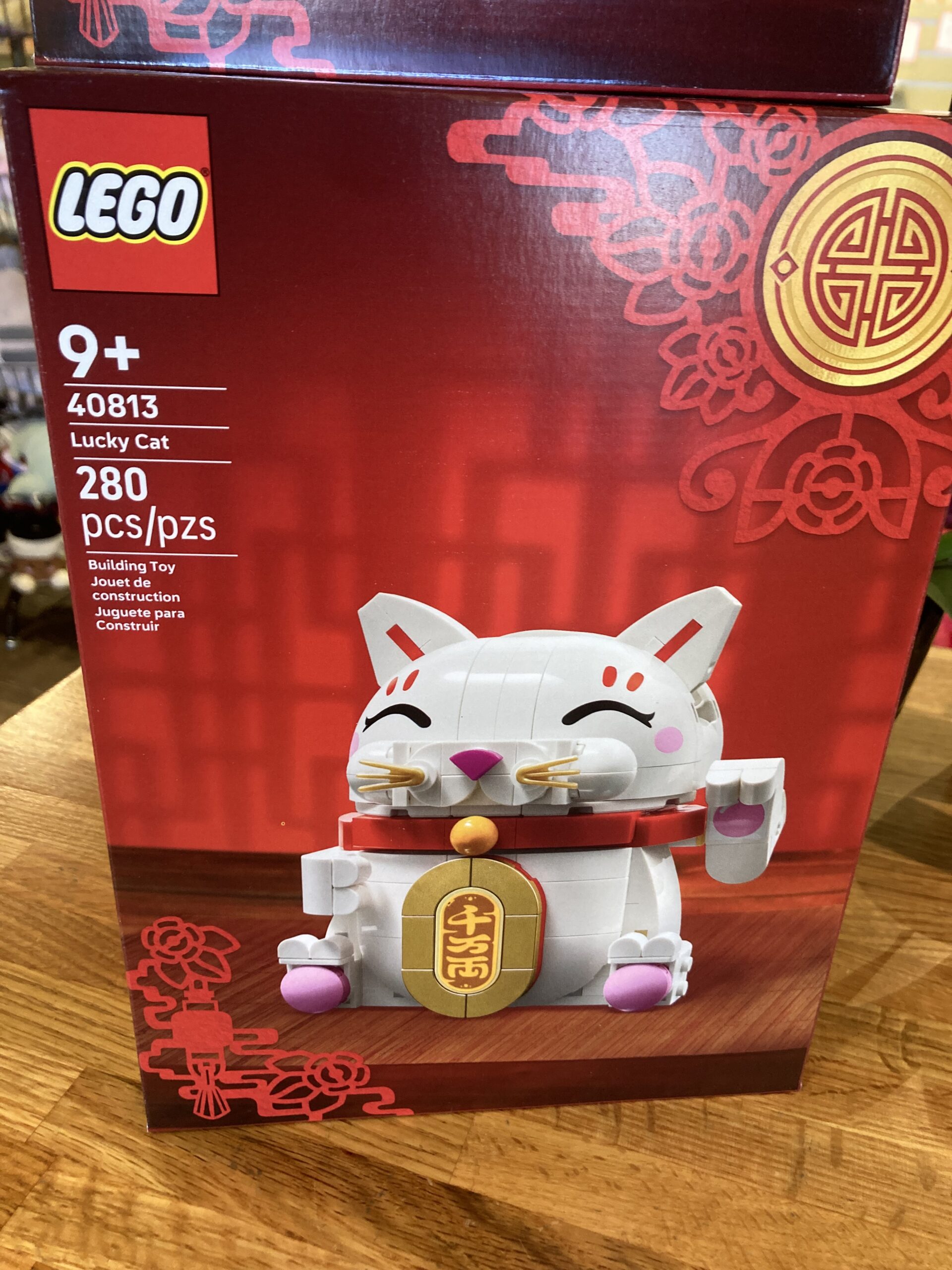 Friday I was at a card shop looking for Valentine’s Day cards for Ted and Maya, and came across this Lego set. My friend Cherry’s husband, Eric, always raises his fist in solidarity when at an Asian restaurant with one of these little cats, and he calls them ‘Black Power Kitty’, which I love. So of course I had to snap a photo and send it to her.