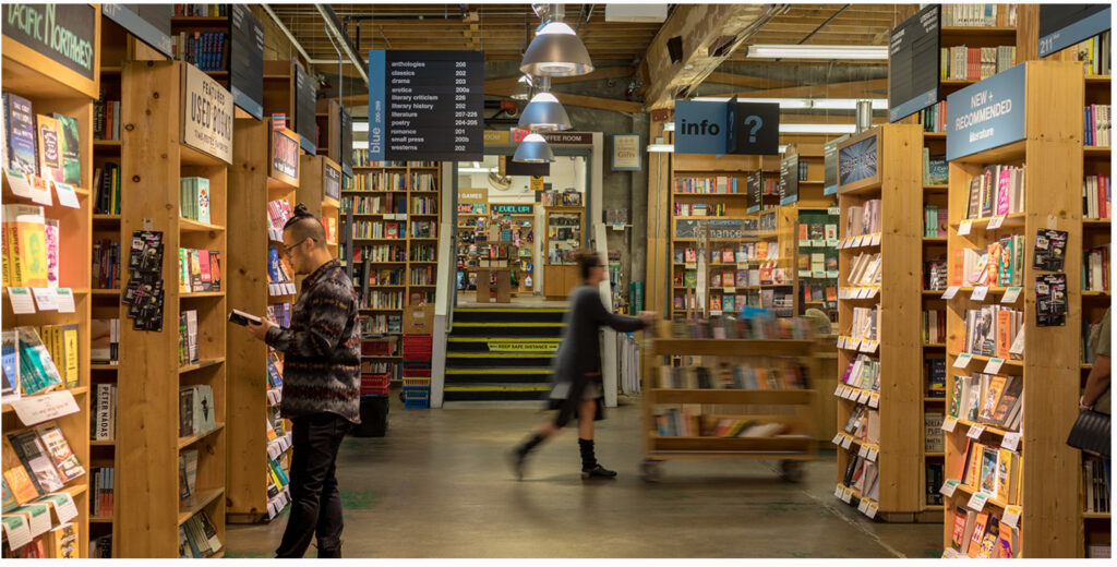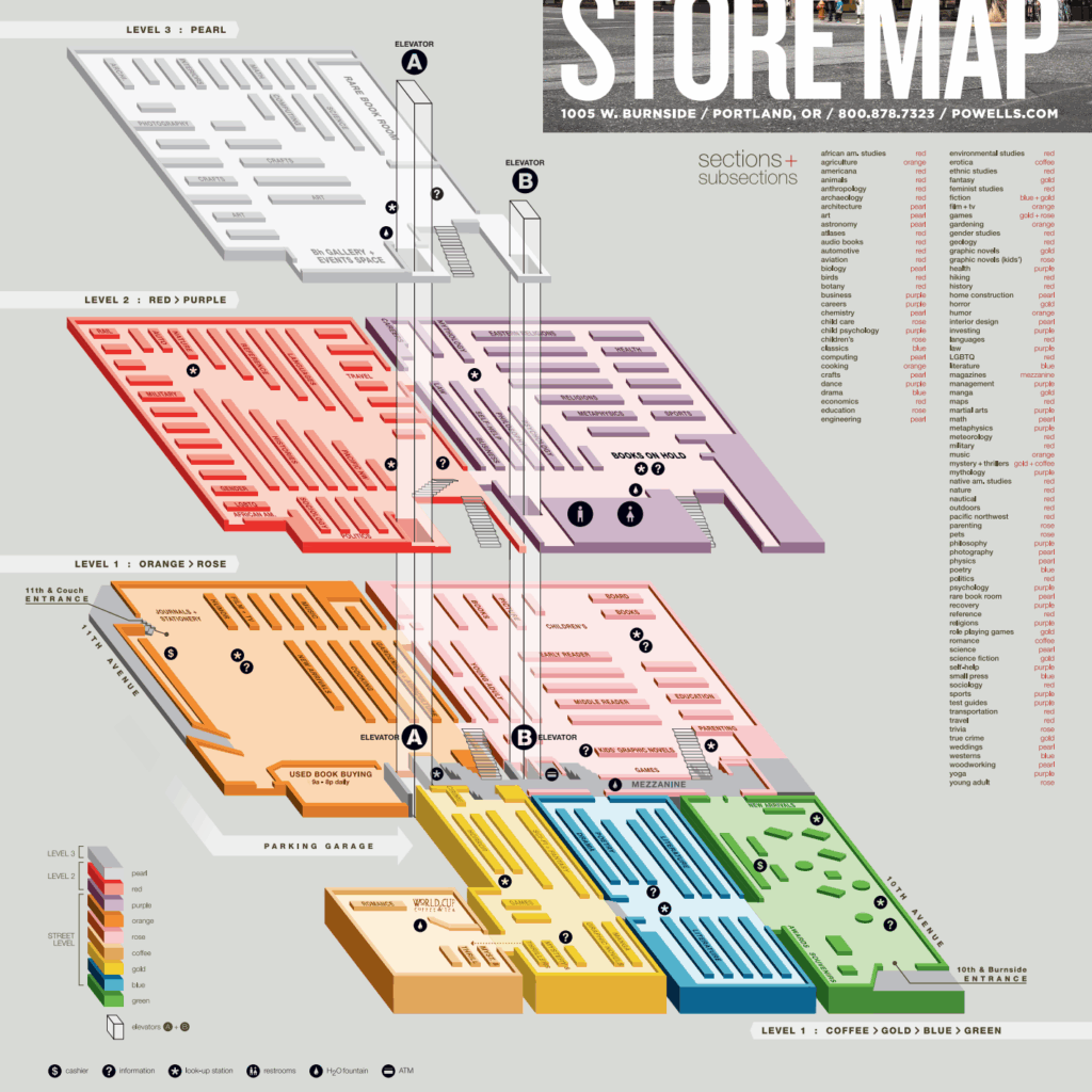 Powell’s is the largest independent bookstore in the US, and encompasses an entire city block. They carry both new and used books, and have over 1,000,000 books in stock in their main location. I have never spent much time upstairs, mostly I like the Green and Blue Rooms. The Green Room is new titles, and has a nice selection that is fun to browse. Then you get serious and move on.