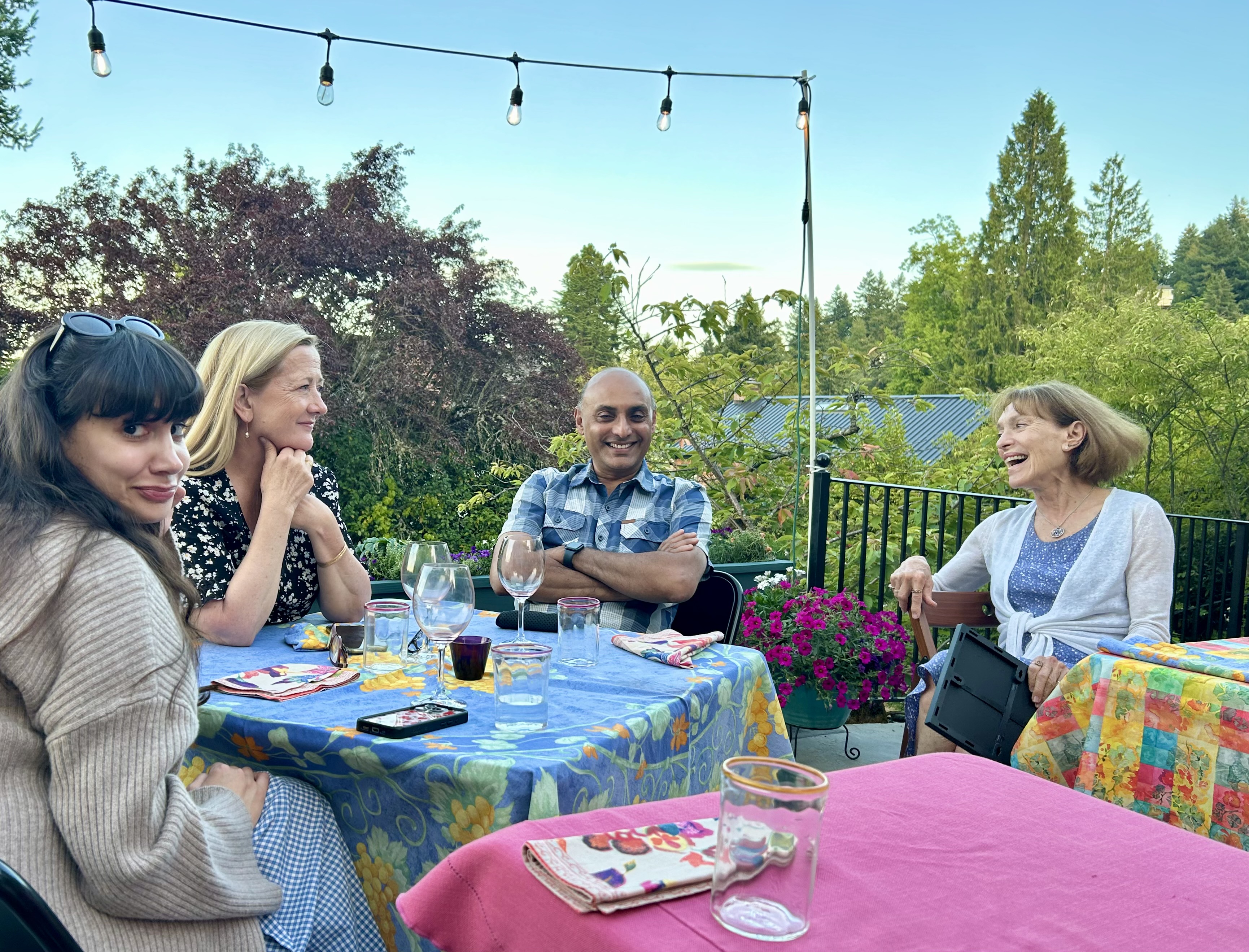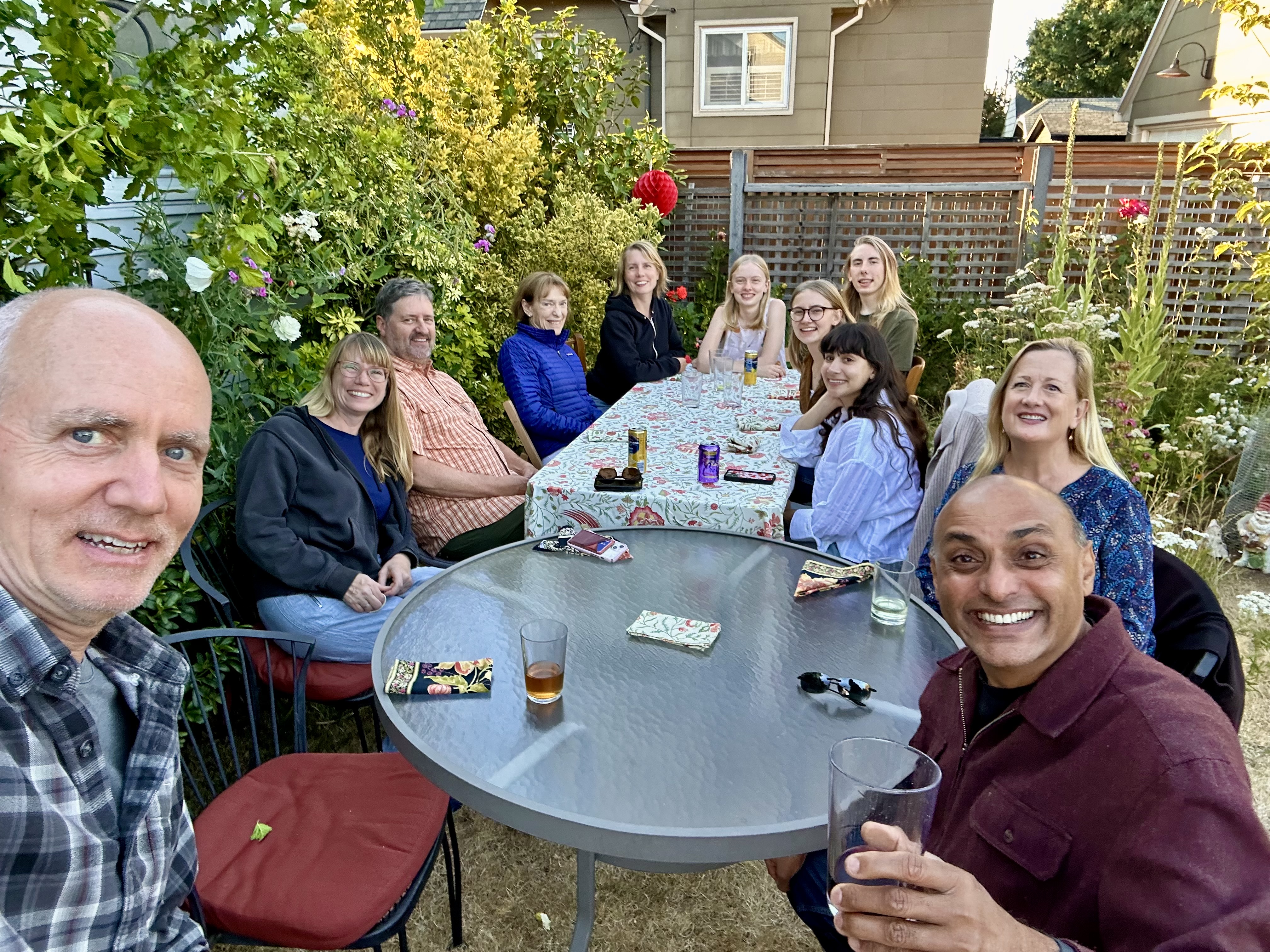 Our final evening was spent in Julie’s back yard. Picture above, Maya, Me, Ted, and Julie. Julie put together a delicious meal with something for everyone (lots of different dietary needs/likes). There was Marionberry pie! YAY!