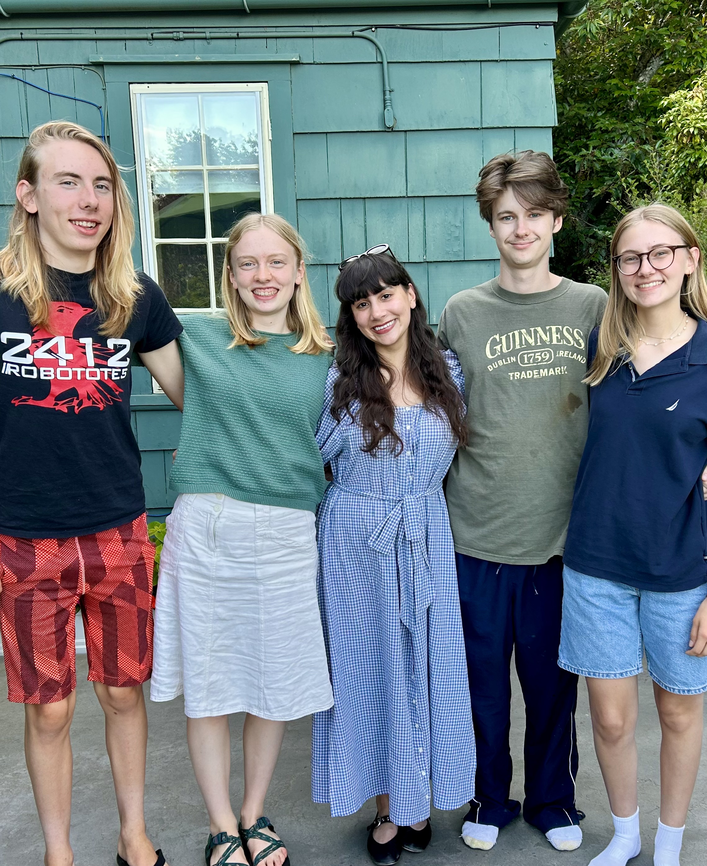 Cousins! Left to right, Crow, Chloe, Maya, Jack, Sophie. Crow is going into their senior year of HS, the other three are in college. Finding a weekend when we could all get together and be in the same place at the same time can be a challenge, with travel plans and work schedules and so on, so we were really happy we were able to make this work.