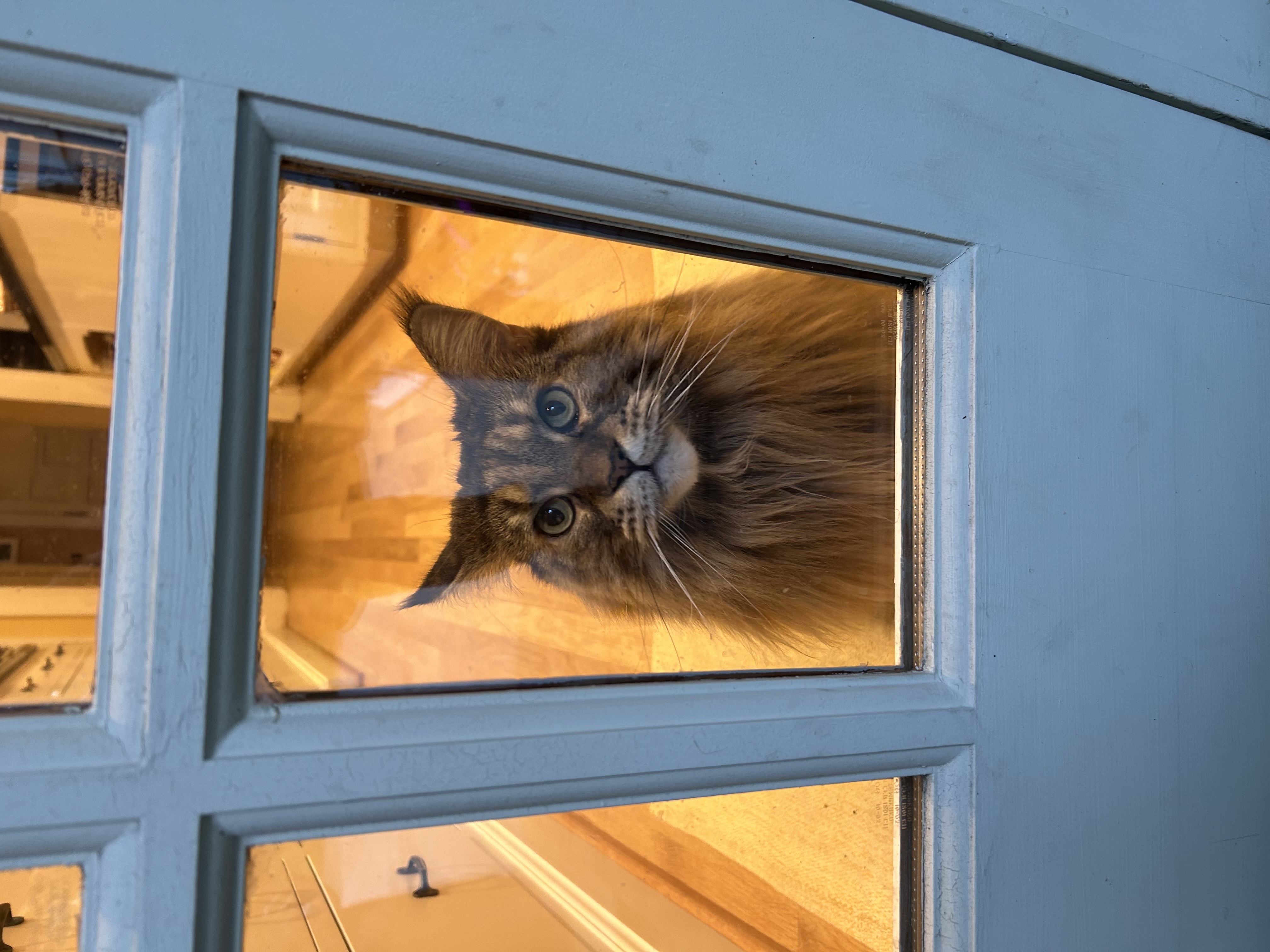 This is Hazel, Julie’s cat. She was Tom’s cat (Tom was Julie’s partner of about 1.5 years, who died in 2023) and she and Julie don’t really get along. We all feel like Hazel is a LOT and should be rehomed. She is only 4 years old, and Julie deserves to have a cat that will sit and cuddle her without biting and/or scratching. If she were 15 or 16, I would feel differently, but she has a long healthy life ahead of her. I hope Julie decides to rehome her and that she finds a home that makes her less grumpy and hostile. So far Julie is against it, she promised Tom she would take care of Hazel.