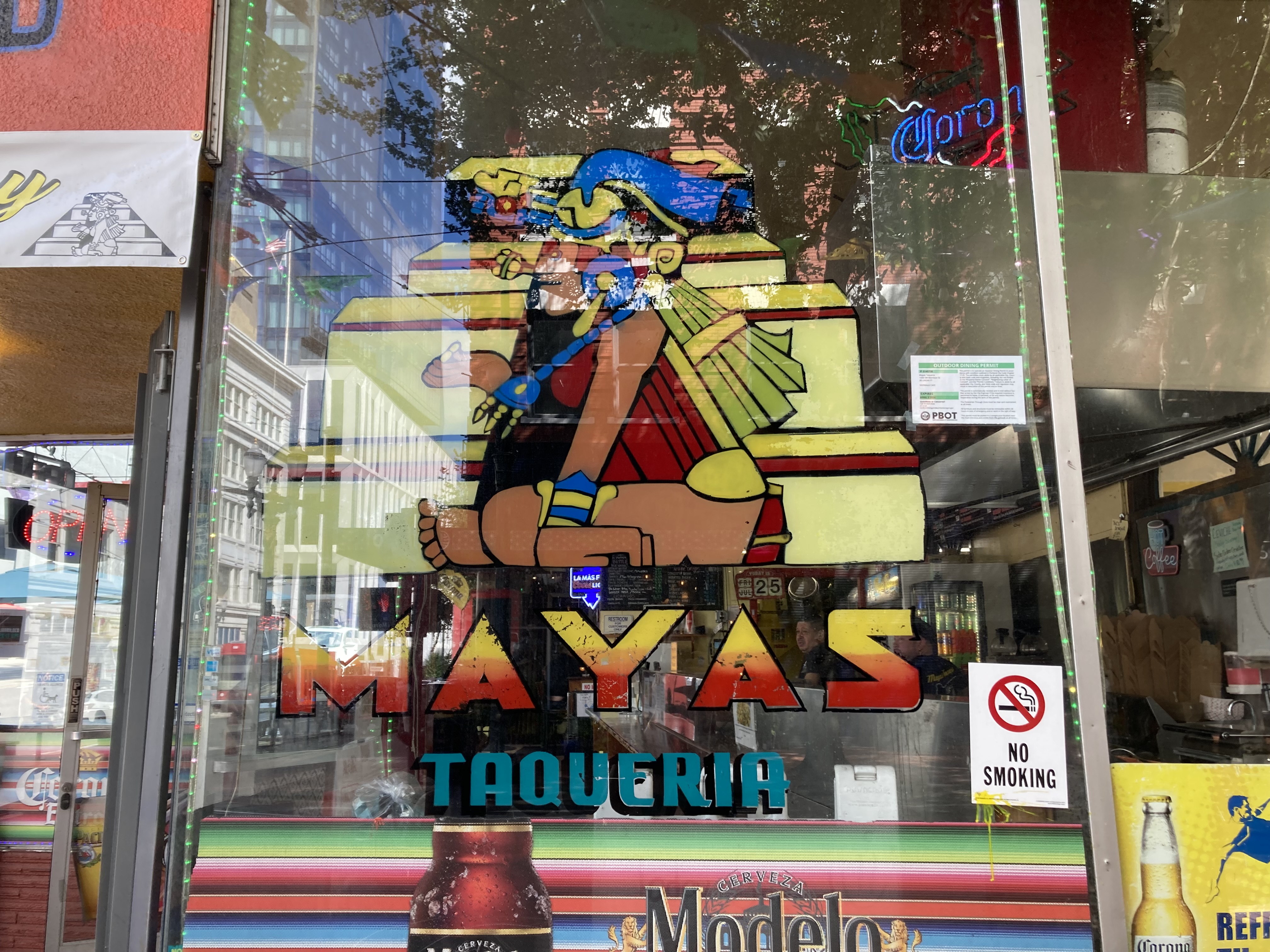 Portland has a beautiful airport, nicer than San Francisco* even, and much nicer than Oakland. We got through security quickly, and I did a little shopping. There is a little satellite Powell’s, and I got a t-shirt and a gift card I had intended (and forgotten) to buy on Saturday. Maya got a sweatshirt.