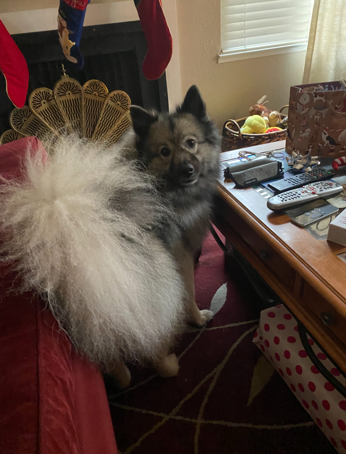 Here we are at the END of NaBloPoMo, so above is a picture of Mulder’s END. Maya showed me this picture she took one Christmas morning, which I had never seen before. So fluffy!