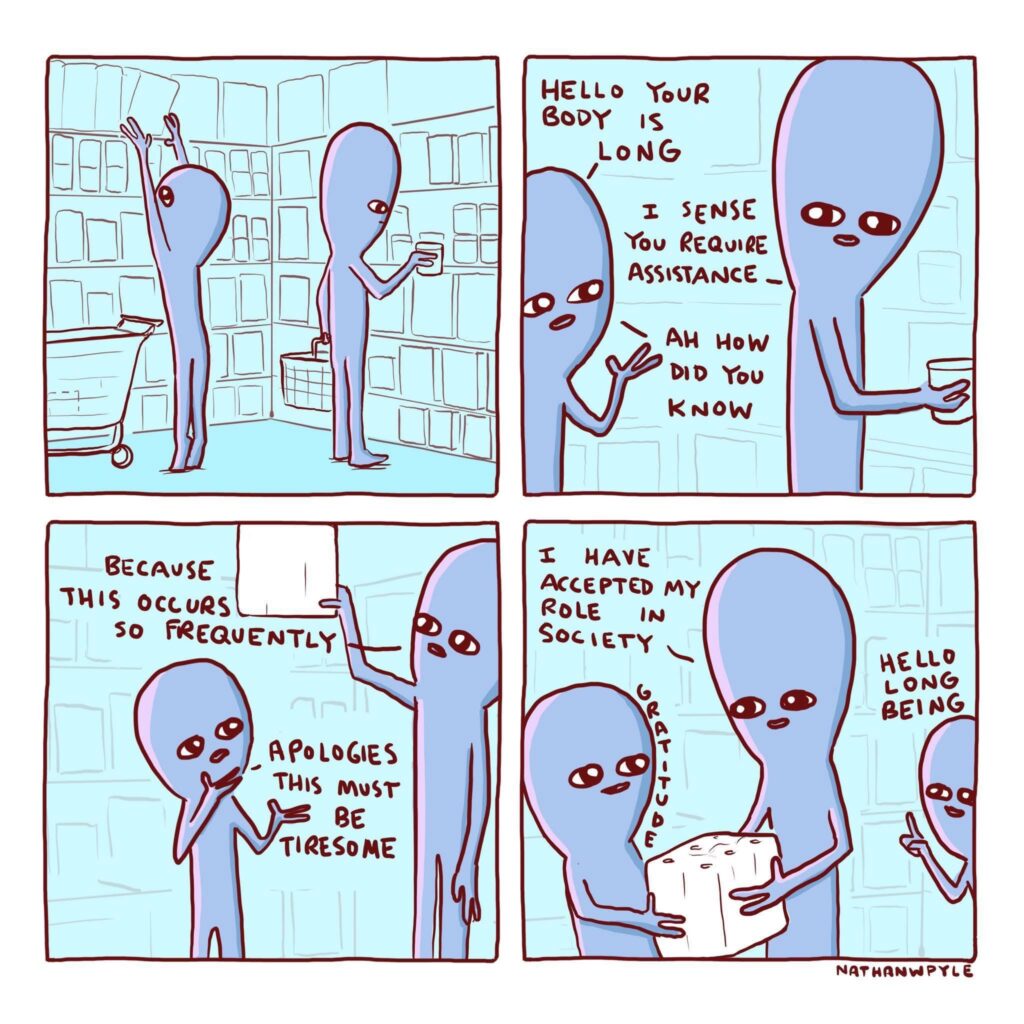 I often am asked to reach for things on the shelf! I’m not super tall – 5’7″ – but tall enough to reach, usually.