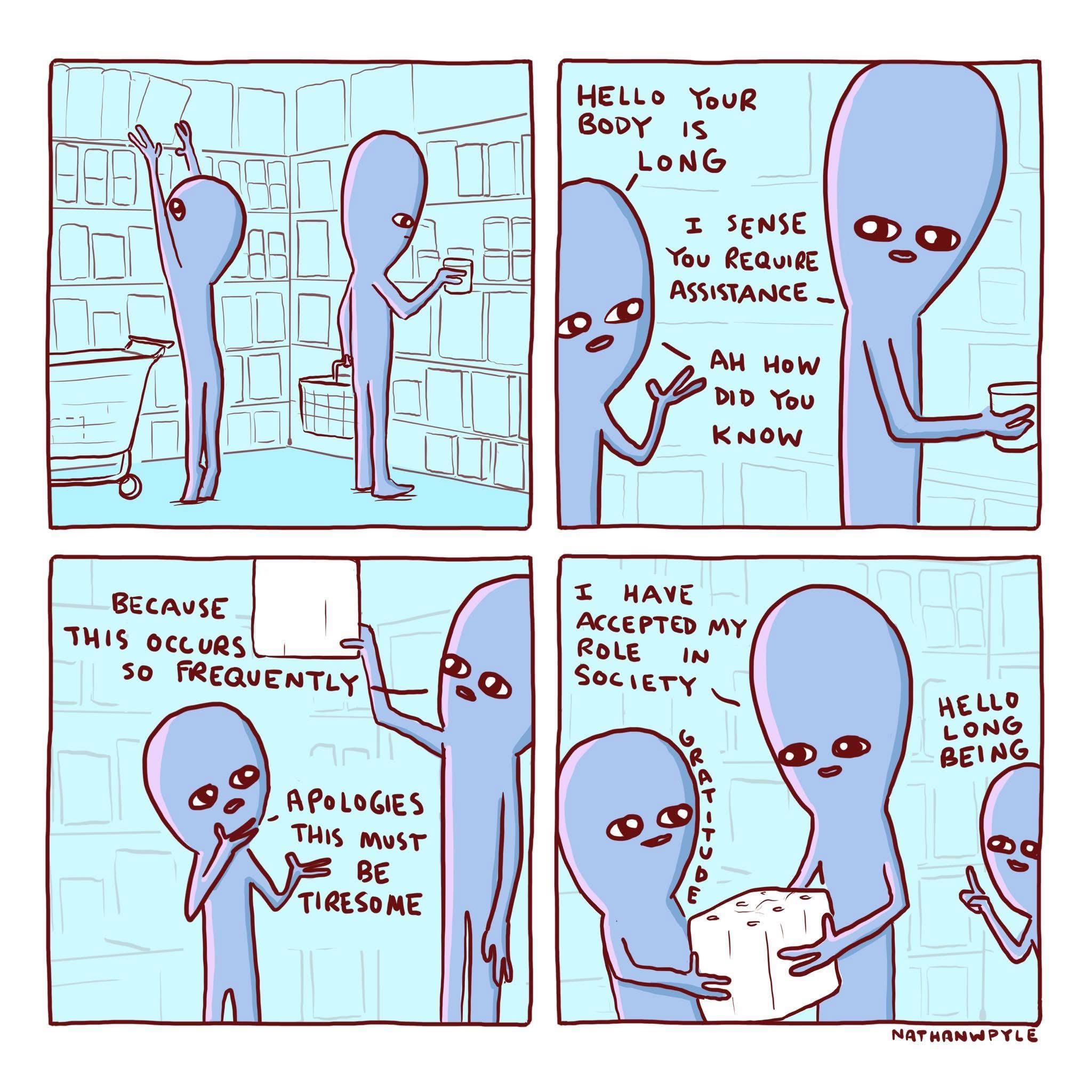 This is me at the grocery store. To be clear, I’m the one asking for help. I love these coneheads.