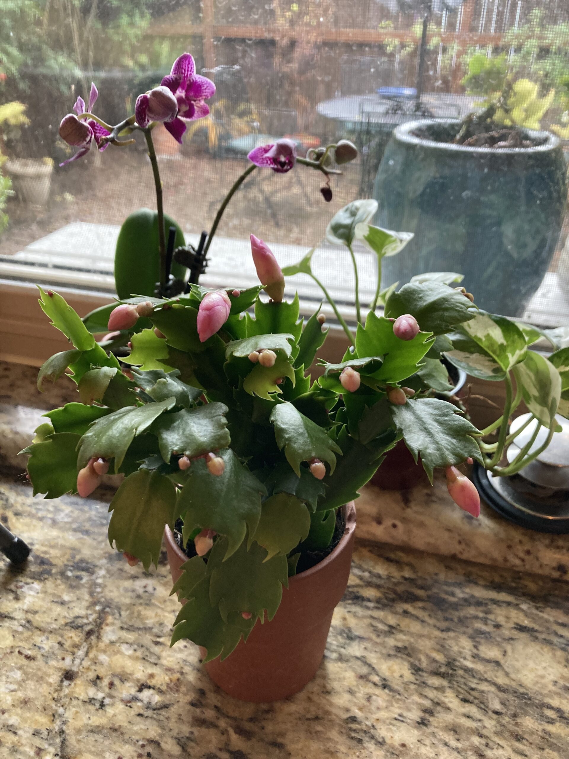 The Christmas Cactus is the only plant that I know how to take care of! I was given one that never bloomed, and then I learned how to “take care” of them: neglect! You’re supposed to put them in a cool dark place during the summer. Once I started doing that, it bloomed like crazy from Christmas through Easter. I guess leaving them outside like your neighbor does somehow achives the same thing.