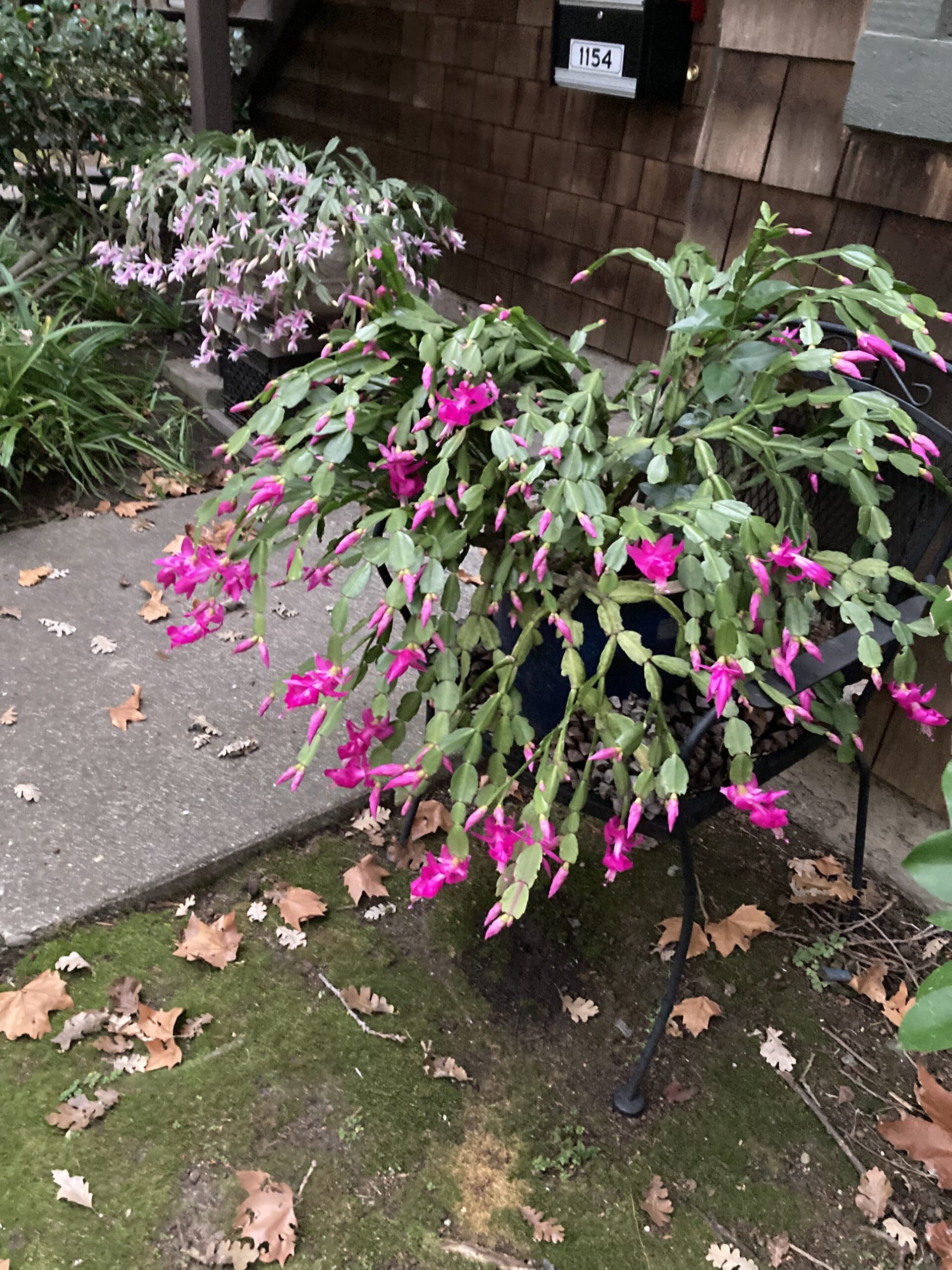 Speaking of Christmas Cacti, look at these in front of a neighbor’s house. They sit out front all year, I have no idea what goes into their upkeep. Through the heat of summer they look like crap, but then they do this.