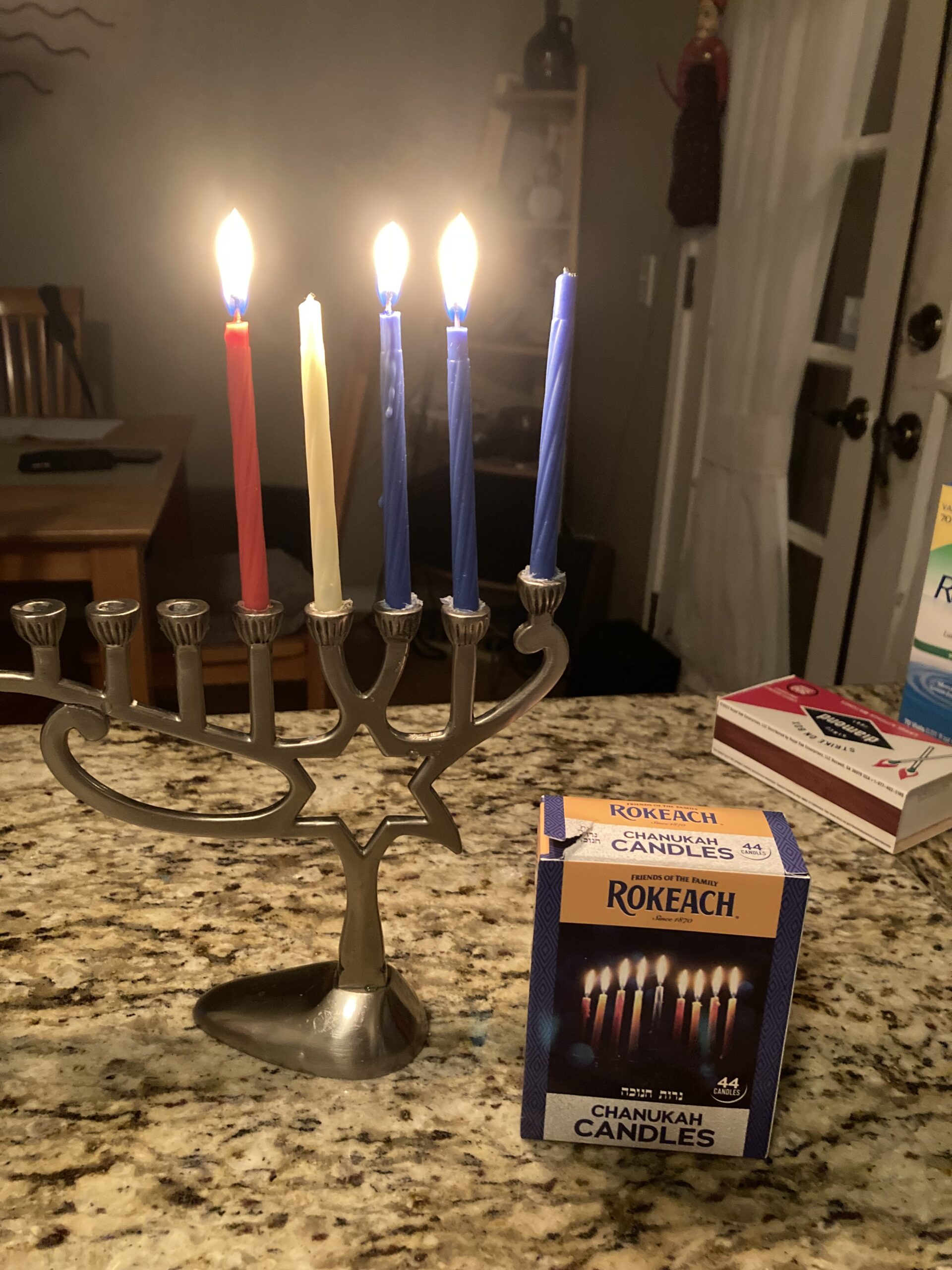 Back to Hanukkah, I couldn’t find my usual candles this year, so I bought these at the grocery store. They suck. Do not recommend this brand. They were under $2, which is good, but look, some of them can’t light. Bad. Spend the $6.